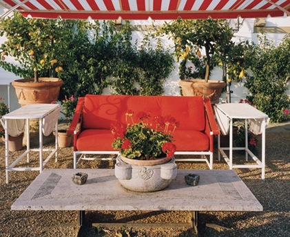I love the shots of Orange in this otherwise White Room. Notice the skirted table in the background.